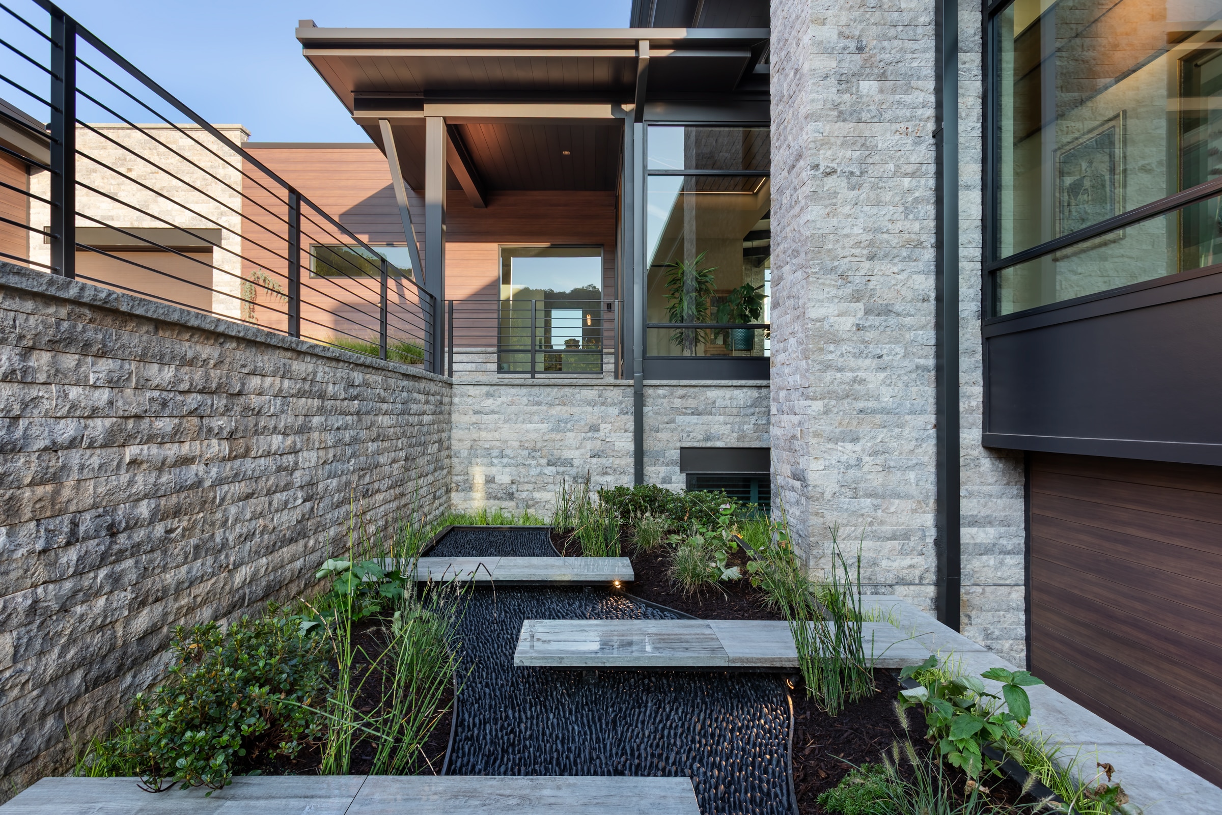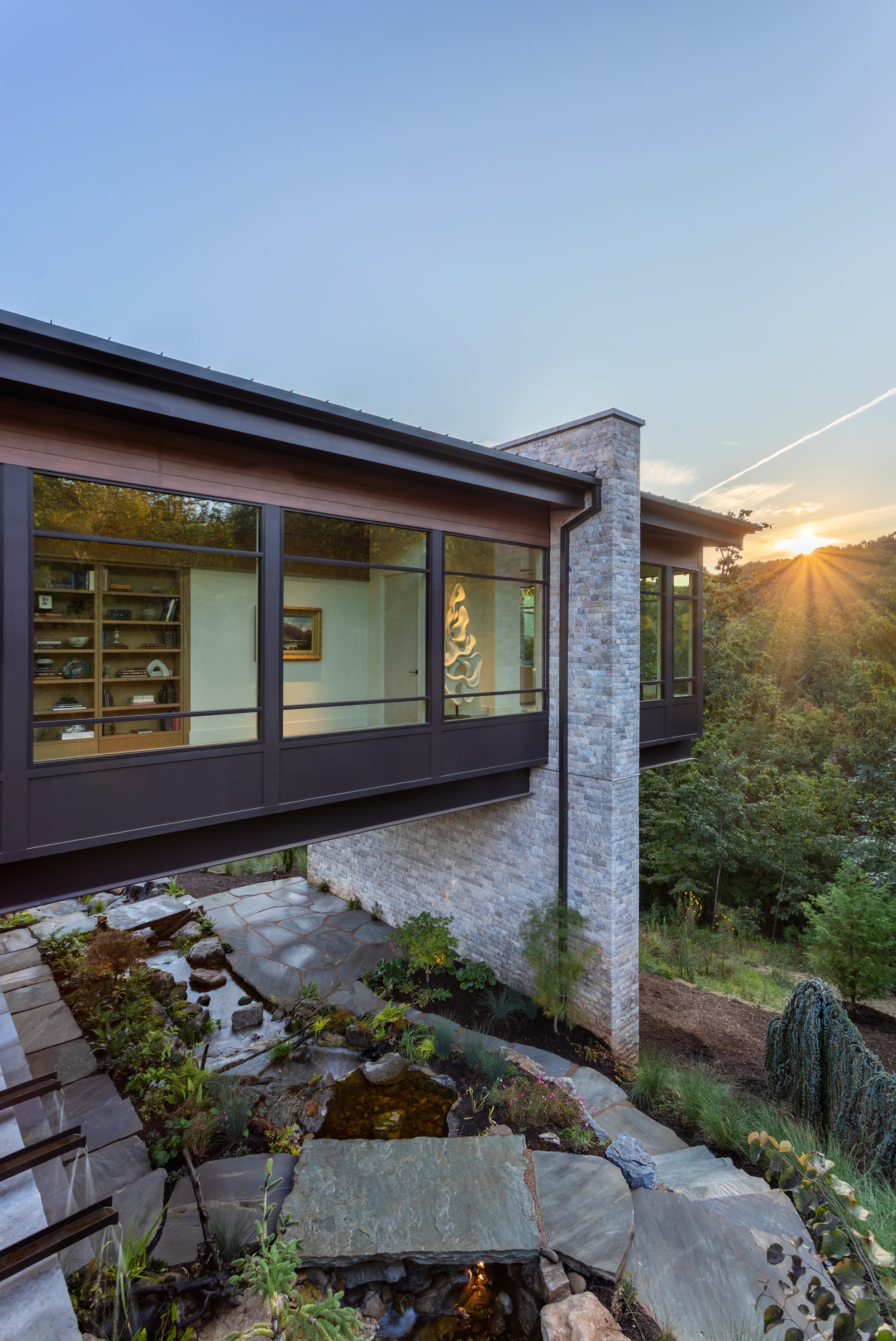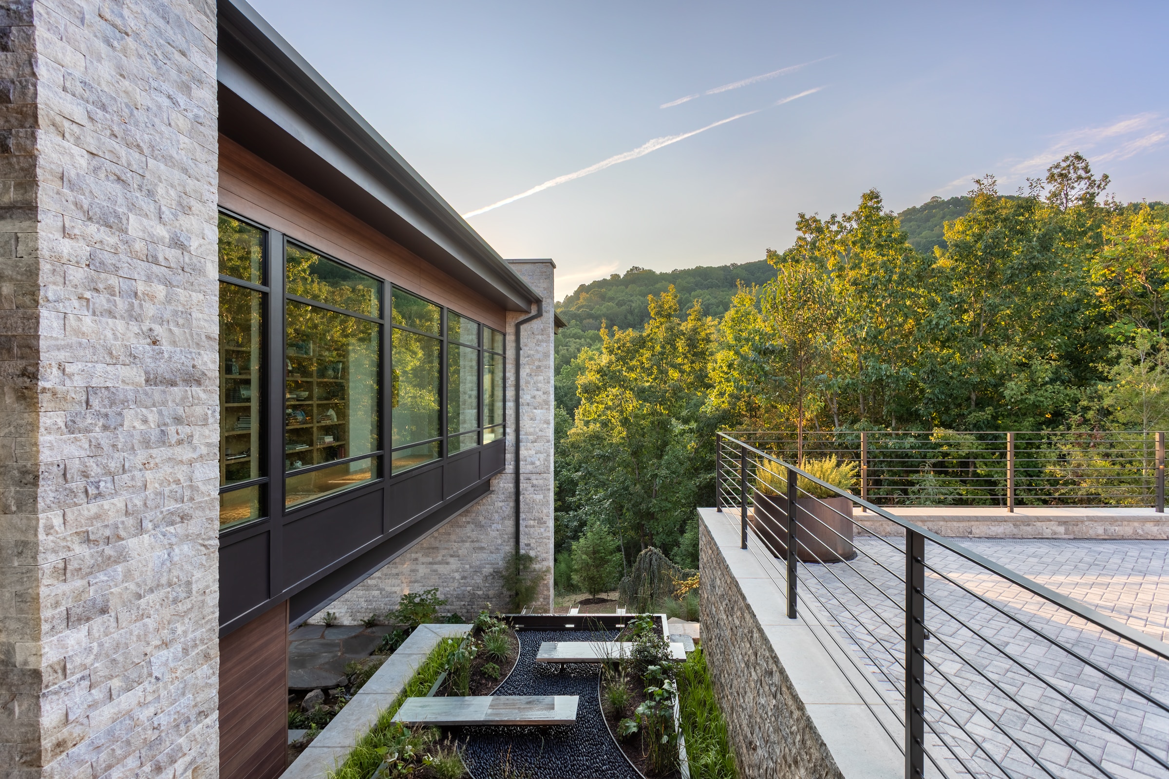 Tucked into the north slope of Paris Mountain in Greenville, this multiple award-winning residence is a thoughtfully crafted mountain modern retreat built as both sanctuary and gallery. This winner of the International Property Awards 2025 for residential property development in South Carolina and the NAHB 2025 Silver Award for Best One-of-a-Kind Custom Home is designed for a retired art gallery owner and a financial executive. The home blends clean lines, curated materials, and wide-open views of Caesars Head. Bluestone Construction was brought in early to assist with site selection, team assembly, and construction. The final design—anchored by a long, light-filled corridor for displaying art—was inspired by a fleeting scene in a foreign film. Expansive windows frame the Blue Ridge Mountains, while warm wood finishes, custom millwork, and minimalist detailing offer a quiet backdrop for the couple’s collection of paintings, sculpture, and rare books. Every detail, from slope-sensitive siting to the interplay of light and volume, was crafted to reflect the clients’ refined, creative lifestyle and to blur the line between dwelling and gallery.